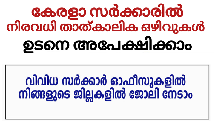 നിങ്ങളുടെ അടുത്തുള്ള സര്ക്കാര് ഓഫീസുകളില് താത്കാലിക ജോലി നേടാം